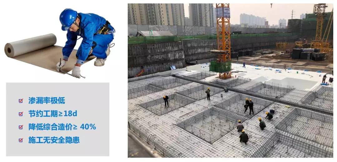 為了打造品質(zhì)無憂的防水工程,凱倫股份創(chuàng)造性地研發(fā)出了以MBP高分子自粘膠膜防水卷材為核心的預(yù)鋪防水系統(tǒng),在具備優(yōu)異防水性能的同時,還實現(xiàn)了優(yōu)化構(gòu)造層次、減少土方開挖量、承臺坑立面無需抹灰、墊層厚度可減薄等施工流程上的簡化,真正實現(xiàn)了工期縮短、滲漏率低、后期維護少。