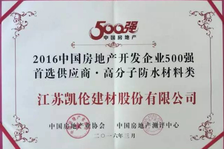凱倫股份是一家集防水材料研發(fā)、制造、銷售及施工服務于一體的國家高新技術企業(yè)。先后獲得“中國防水行業(yè)質量提升示范企業(yè)”、“中國房地產500強供應商”(中國房地產業(yè)協(xié)會頒發(fā))、“江蘇省優(yōu)秀企業(yè)”(江蘇省民營企業(yè)家協(xié)會頒發(fā))等榮譽稱號。